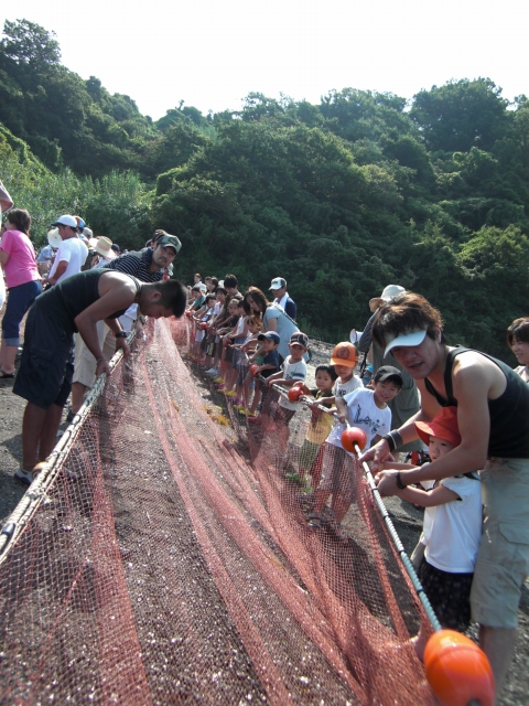 まず最初は、地引網漁体験