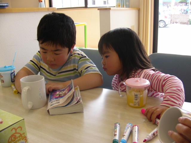 お子さんたちはマグカップを作ったり、ご家族皆さんの絵を描いたりして遊びました