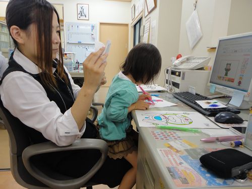 間さんの膝の上でお絵かきしてました