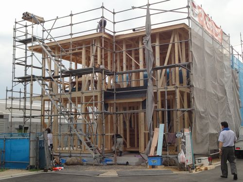 お家の骨組みが建ち上がる日です