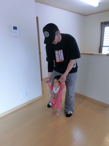 その後パパとリビングで、あんよの練習