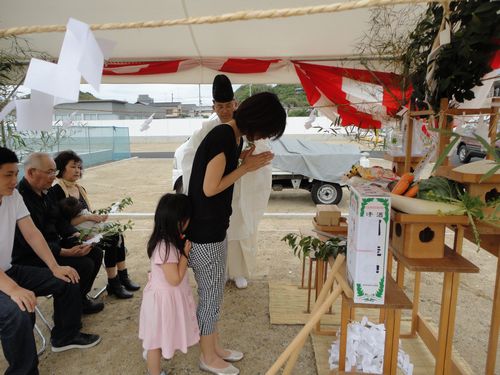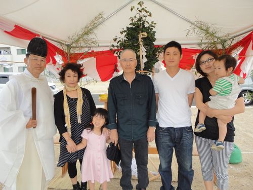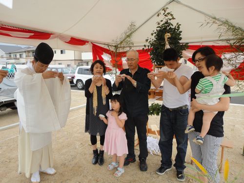 皆で工事の安全と素敵なお家が建つように祈願し乾杯をしました