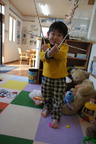 ゆう君に「こんにちはーって言うんよ」っと言うと、