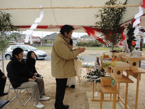 風もあり寒い中での地鎮祭でしたが、工事の安全を祈願し無事終わりました