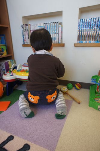 優しいりょうくんは、一緒に遊んでいたお友達におもちゃを譲ってあげたりして遊んでいました