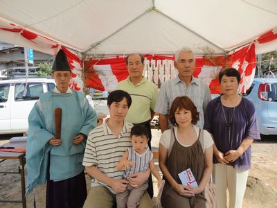 でも、地鎮祭が始まるとからっと晴れて、暑い中での地鎮祭となりました
