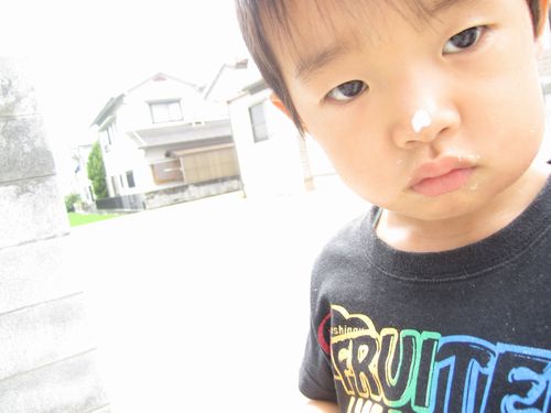 えなちゃんが食べてたヨーグルトを鼻に付けてたかいくん