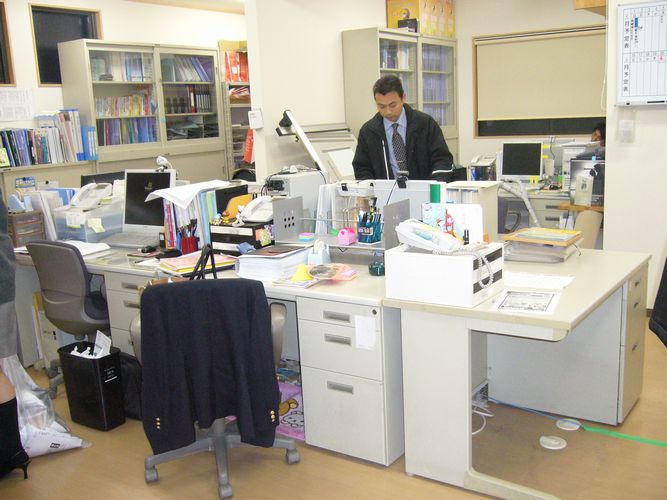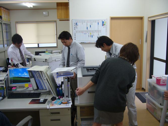 今まで営業さんと別にあった、事務の机を一緒にしました