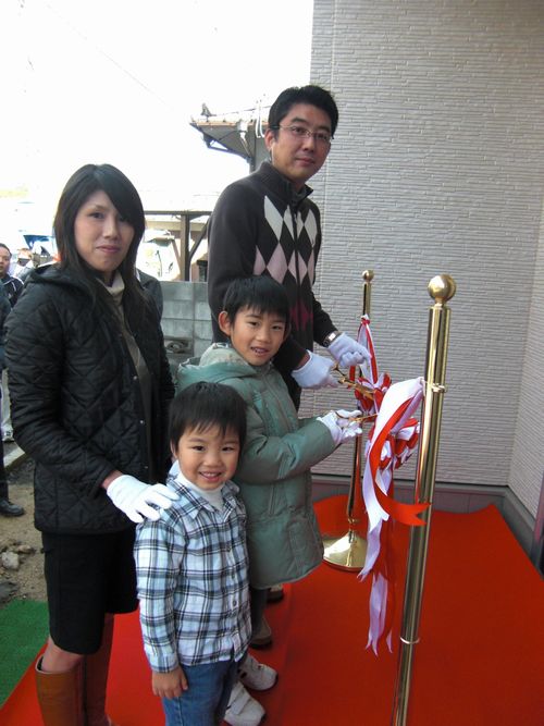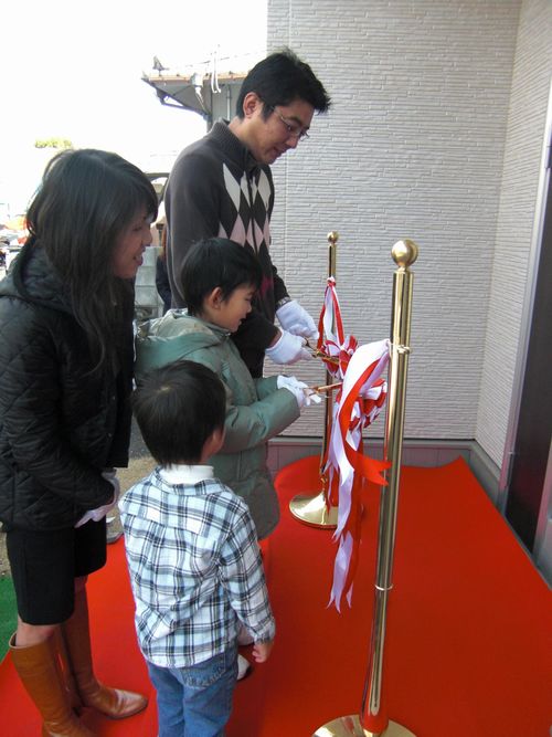 テープカットはご主人様と、奥様の代わりにお兄ちゃんがチョキン