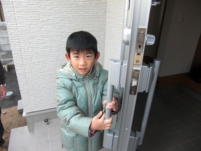 新しいカギを入れることで使えなくなった工事用のカギは、記念にお子様にプレゼント