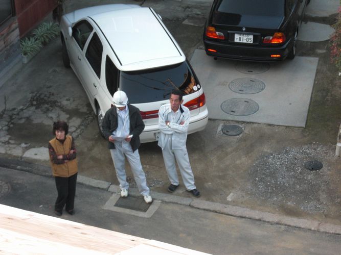 この日はご近所の方もたくさん見に来られ、朝から工事の音でご迷惑をおかけするのにもかかわらず、一緒に骨組みが立ち上がっていくのをご覧になられていました。