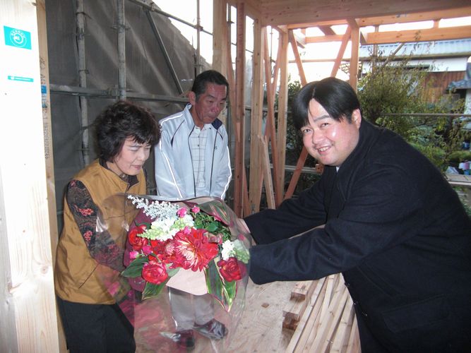 前日の雨も止み、あまり寒くもなく、いい天気の中での上棟でした