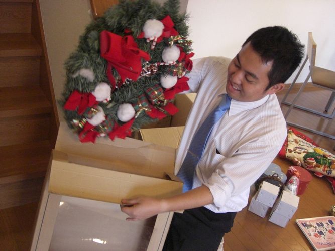 今日は、メンバーのみんなで、モデルハウスに、クリスマスの飾り付けをしました