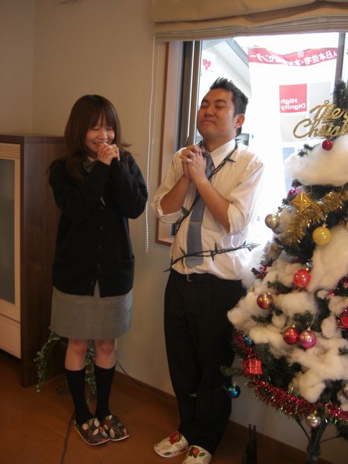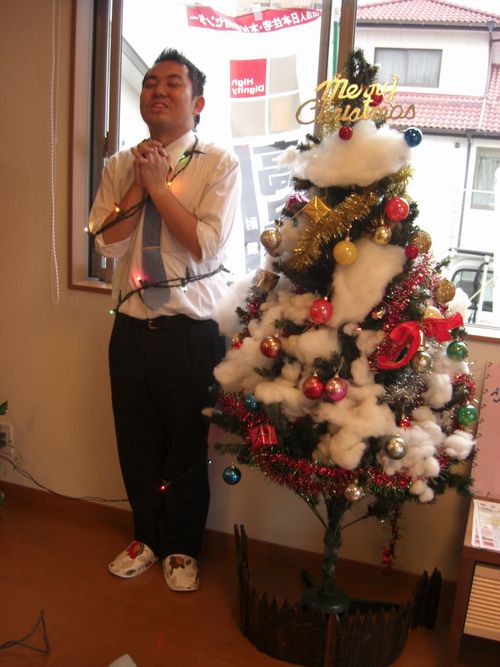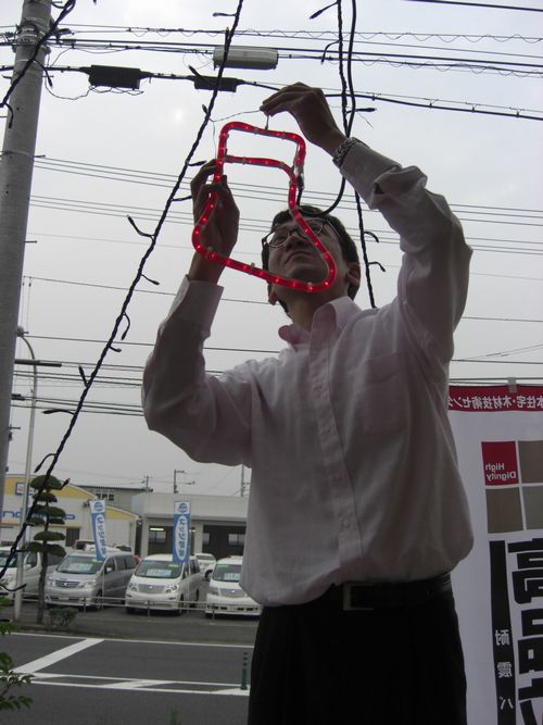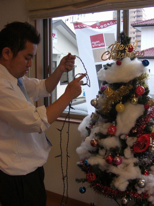 門田主任がこうして真剣に電飾を取り付けているのに