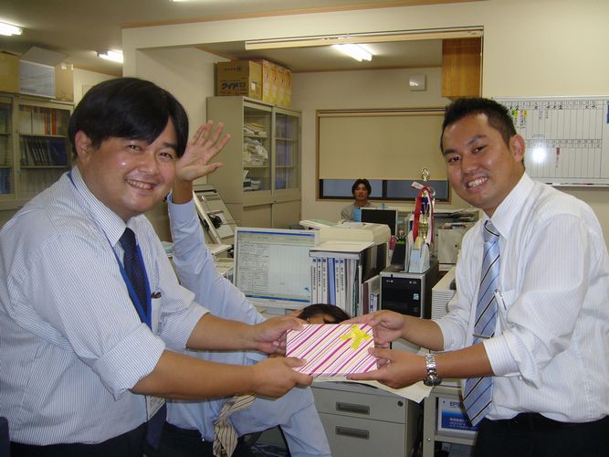 三好主任と青木くんは外出中でしたが、あとのみんなでお祝いをしました