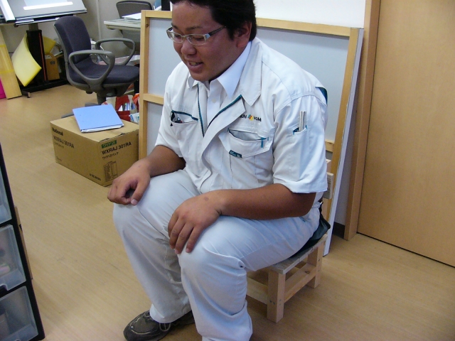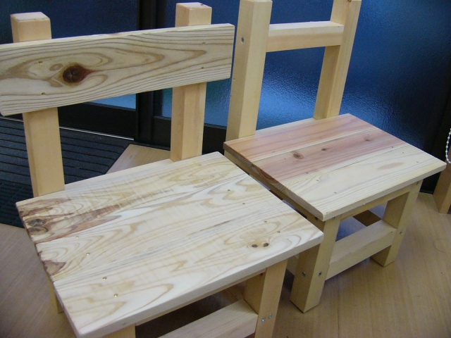 初日の松山北店に来てくださったのですが、そのときに大工さんの手作りイスを購入されました