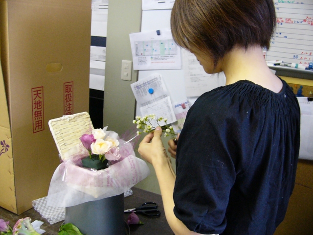 お店に行くと、ちょうどアレンジメントを作っているところでした