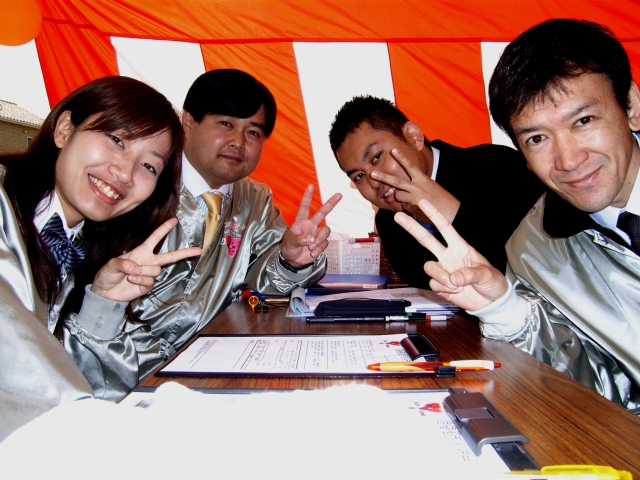 MB事業部の杉原主任、東店の中西さん、インター店の立花さん、北店の濱田という、幹建設でも選りすぐりのさわやかメンバー4人です