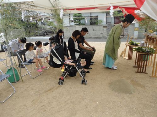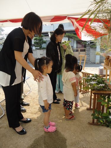 近所のお子様達が遊んでいる中、地鎮祭スタート