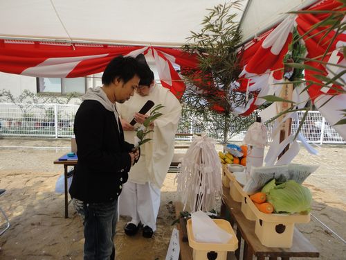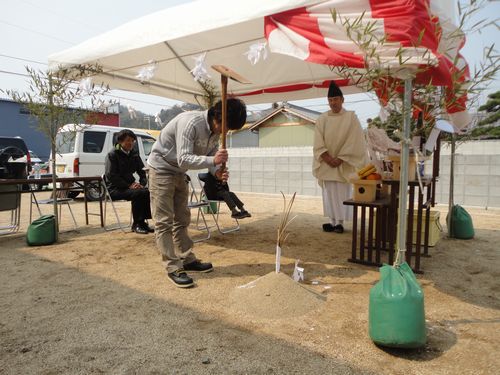 とっても風が強くちょっと寒かったですが、無事地鎮祭が終わりました