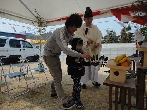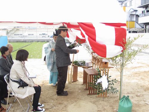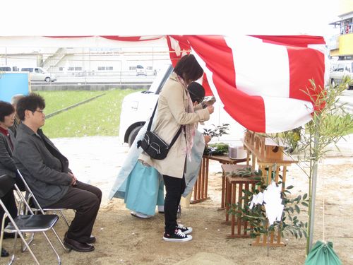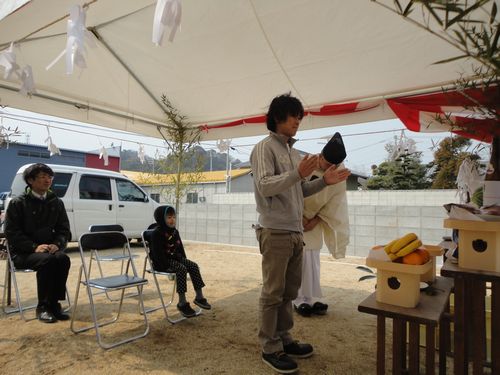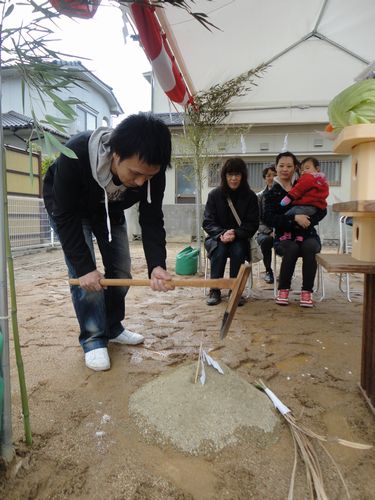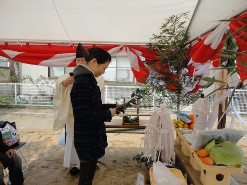 ご夫婦のご両親さんも参加され、とても賑やかな地鎮祭でした