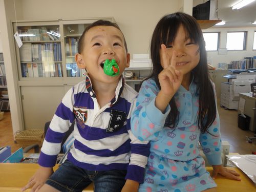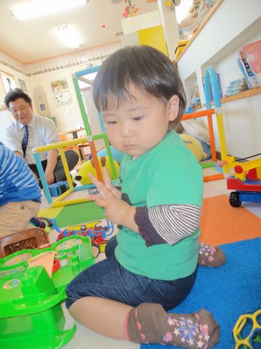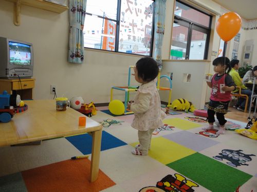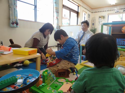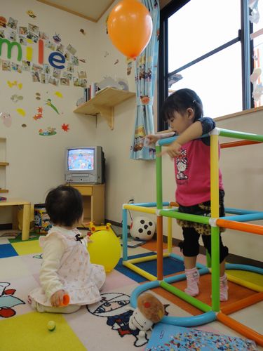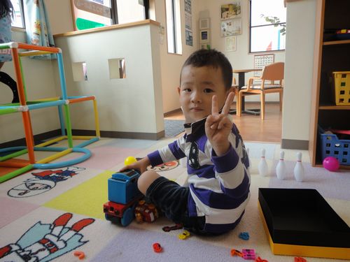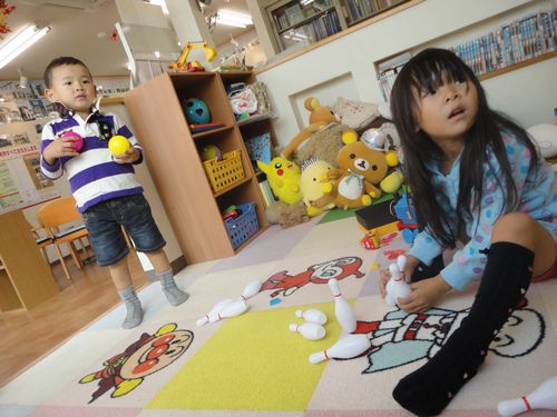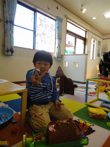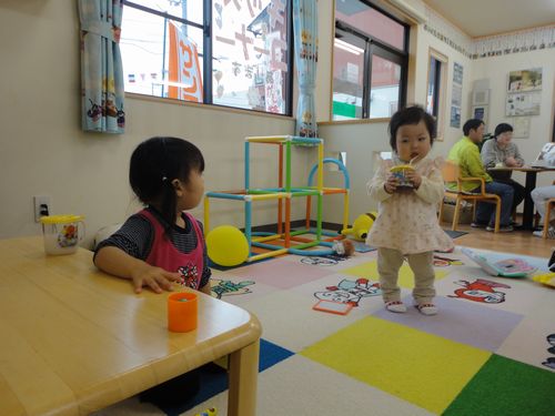 お部屋の中に入って、はやと君とひまりちゃんと一緒に遊びました