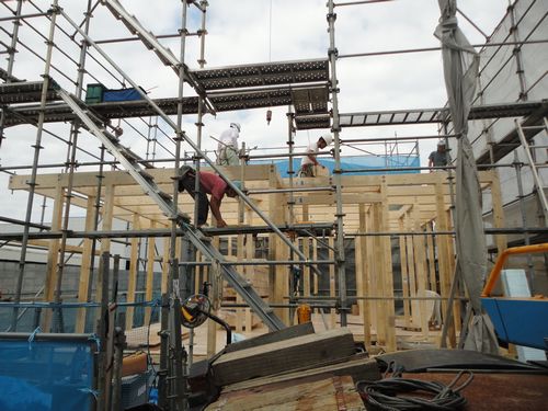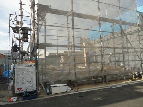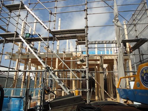 お家の骨組みが建ち上がる日です