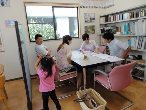 昨日は、建築中のM様が仕様の打合せに来られていました