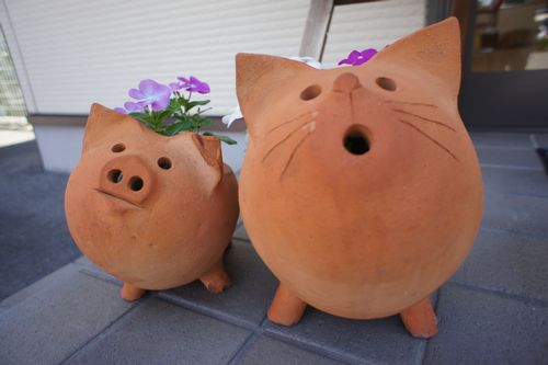 お店の前では、ブタさんとネコさんが不思議な顔をして待ってます