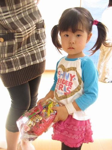 ゆーちゃんが佐藤さんからお菓子をもらってました
