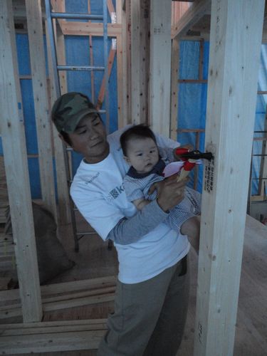 Y様は、朝早くから上棟に参加してくださり、
