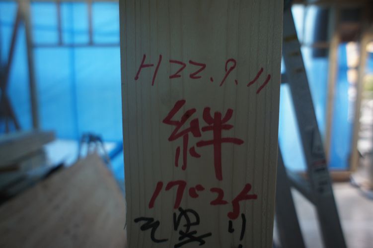最後に、A様が柱に書いた言葉は、「絆」でした