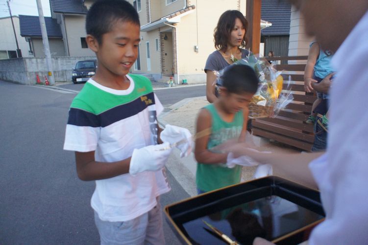 でも、地鎮祭が始まるとからっと晴れて、暑い中での地鎮祭となりました