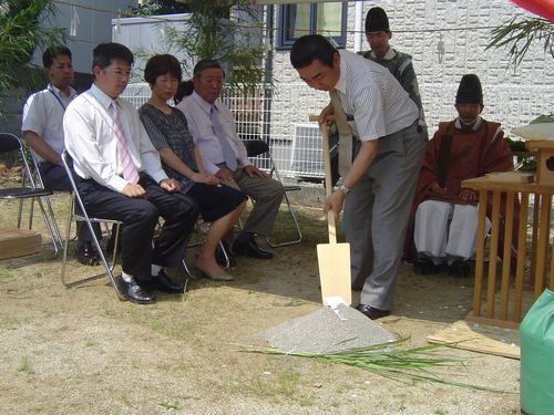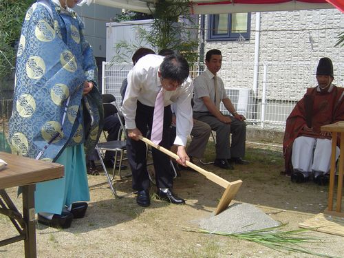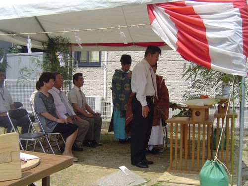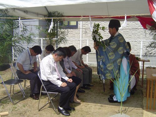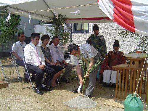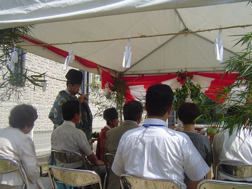 今では珍しい神主さんの笛の生演奏(?)で地鎮祭が始まりました