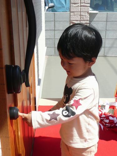 ときくんも一緒にテープカットをした後は、カギに興味津々