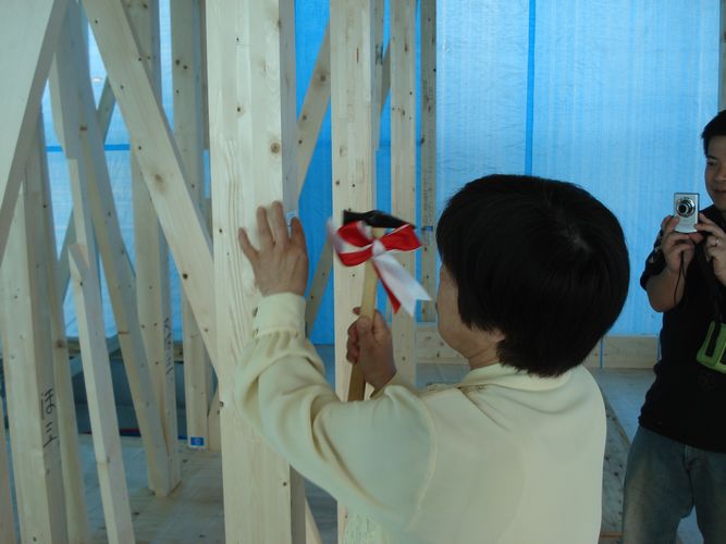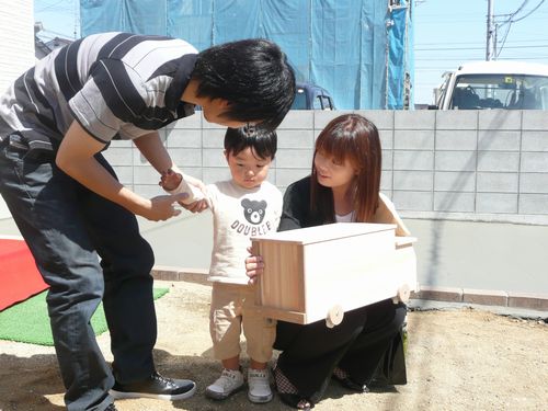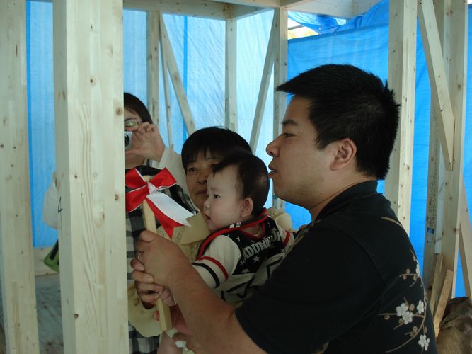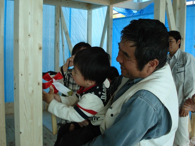セレモニーにはA様のお家を建ててくれた近藤棟梁も参加してくれました