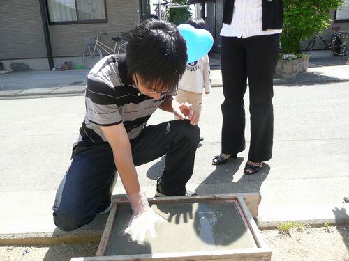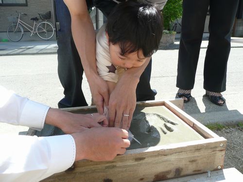 お引き渡しの後は、Y様ご家族で手形を押しました