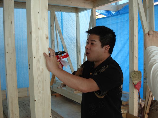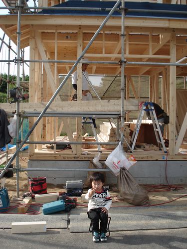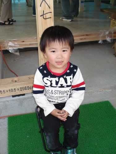 こうたろう君は、こうたろう君のお家を建ててくれる掛水棟梁と一緒に