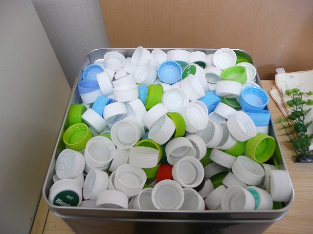 サンエルホーム松山北店ではペットボトルのキャップ集めをしています。