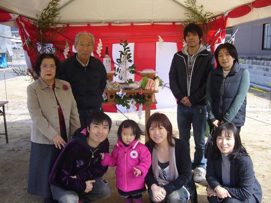 A様ご夫婦のご家族の皆様も参加され、地鎮祭が始まる前からとってもにぎやかでした