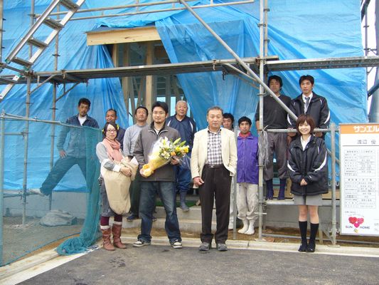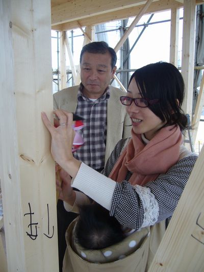 W様は朝からずっと現場に来られていて、だんだん形になっていくお家を
