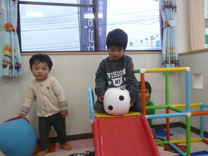 久しぶりのお店にすこし緊張気味でしたが、かなちゃんは滑り台で、