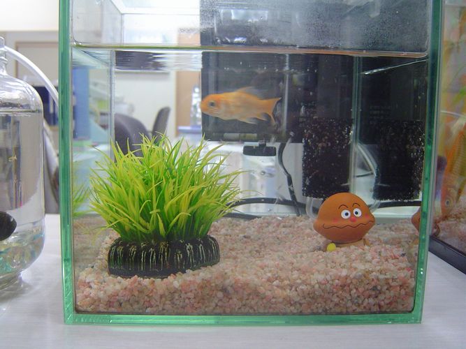 さて、今日事務所に来たら飼っている金魚の水槽が綺麗になってました