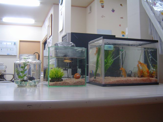 真ん中の水槽にはカ○ーパンマンも一緒に泳いでおります