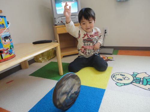 トーマス缶のふたを転がしたり